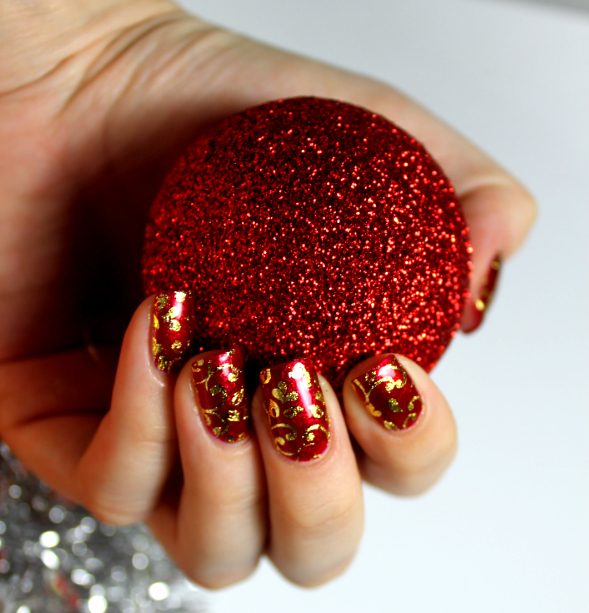 Hellou! Huomasin tuossa jokunen aika sitten, että olihan mulla vielä varastossa yhdet jouluiset kynnet, eli vielä yksi jouluinen postaus saadaan tähän vuoteen, mutta sitten ne ovat kyllä taputeltu. :D Mietin usein mitä ihmettä kirjoittelisin postaukseen, jossa esittelen vain lakkailemani kynnet, mikäli niissä ei ole mitään sen kummempaa kerrottavaa tai kommelluksia. Siksi ratkaisinkin ongelman tässä postauksessa näpyttelemällä samalla BunnyTailNails -blogista nappaamani haasteeseen vastaukset. Ohessa siis kuvat ennen joulua tekemistäni kynsistä (kolme ensimmäistä kuvaa). Käytössä oli ihan mielettömän upea China Glazen joulukokoelman kultaglitterlakka (joka muuten peittää täydellisesti kahdella helpolla kerroksella... ♥) Counting Carats ja punaiset kukkadecalit, jotka kai sitten saivat esittää joulutähteä. :D